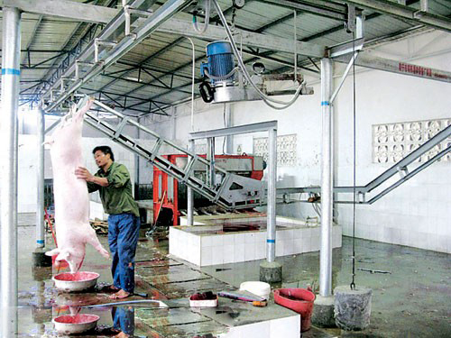 新設(shè)備高效 6分鐘宰豬 1月5日上午,在南寧市壇洛鎮(zhèn),記者看到豬肉攤主馬老板拉著一頭生豬,來到鎮(zhèn)上剛改造好的牲畜屠宰場。豬被關(guān)在待宰區(qū)里,該區(qū)域可容納約60頭豬。工作人員在這里快速對生豬進(jìn)行了檢驗(yàn)。 通過檢驗(yàn)后,這頭百余公斤的豬,被趕進(jìn)了“放血池”;不到兩分鐘,已宰殺的生豬在燙毛灶臺(tái)里“翻了個(gè)身”,就被送進(jìn)了脫毛機(jī),隨著脫毛機(jī)翻滾,90%的豬毛被清除;接著,生豬被送進(jìn)清洗池,工作人員在池子里,快速將生豬洗干凈,掛到提升機(jī)上;懸掛的生豬順著軌道,滑到開邊機(jī)前,工作人員拿起機(jī)器,將生豬分割開;部分需清洗的肉品被拿到清洗臺(tái)上沖洗,同時(shí)工作人員對生豬局部進(jìn)行進(jìn)一步的去毛處理。 記者看到,整個(gè)過程不超過6分鐘。而宰殺一頭生豬,馬老板需支付15元屠宰費(fèi)用。 “自從屠宰場改造后,宰殺生豬又快又干凈,老百姓吃著也放心?!瘪R老板一邊對記者說,一邊把剛屠殺好的生豬捆上摩托車,準(zhǔn)備運(yùn)往鎮(zhèn)上的農(nóng)貿(mào)市場。 當(dāng)天生豬屠宰工作結(jié)束后,工作人員對屠宰場地進(jìn)行了清洗和消毒。 屠宰場“變身” 更多生意上門 在壇洛鎮(zhèn)牲畜屠宰場的對面,“舊屠宰場已停止使用”的牌子懸掛在一座老舊的棚子前。在改造前,一口鐵鍋、幾根水管、一個(gè)水池,幾乎是這個(gè)屠宰場的全部設(shè)備。 據(jù)了解,壇洛鎮(zhèn)舊屠宰場的設(shè)備10余年沒有更新過?!昂退皆赘C點(diǎn)的差不多,”該屠宰場的負(fù)責(zé)人杜勇說,2010年9月屠宰場開始進(jìn)行改造,12月正式投入使用。杜勇告訴記者,改造前,屠宰場的待宰區(qū),只能容納約20頭豬,每逢圩日,場地就變得很擁擠。從宰殺到分割、清洗都得人工操作,效率很低。被宰殺的生豬,也只能放在沒有流動(dòng)水的池子里清洗,“現(xiàn)在宰殺出場的生豬肉品干凈多了”。 同時(shí),屠宰場改造,還可以改善原本屠宰場經(jīng)營不佳的狀況。據(jù)了解,壇洛鎮(zhèn)各村屯村民每日所需的生豬肉品,都可在本村的小市場上購買,因此鎮(zhèn)上居民對生豬肉品的需求量,限制了屠宰場的屠宰量。杜勇說,屠宰環(huán)境的改善,可改變村民逢年過節(jié)在自家殺豬的習(xí)慣,吸引更多“生意”上門,“2010年冬至那天,前來宰殺生豬的村民在這里排起了隊(duì)”。 據(jù)南寧市商務(wù)局流通經(jīng)濟(jì)秩序管理科科長黎劍介紹,壇洛鎮(zhèn)定點(diǎn)屠宰場改造花費(fèi)41萬元,目前的屠宰方式已從手工作坊式的轉(zhuǎn)變?yōu)闄C(jī)械化屠宰,生豬宰殺的整個(gè)過程中,肉品都不會(huì)“落地”。改造后,鄉(xiāng)鎮(zhèn)生豬屠宰環(huán)境與市區(qū)、縣城的水平相近。 黎劍說,由于很多鄉(xiāng)鎮(zhèn)家畜定點(diǎn)屠宰場的集中度相對低,業(yè)務(wù)單一,產(chǎn)業(yè)鏈較短,收費(fèi)偏低,長期以來都處于艱難維持經(jīng)營的狀況,從而無力進(jìn)行技術(shù)改造。據(jù)了解,2010年,各級(jí)政府共下?lián)?68萬元,南寧市各鄉(xiāng)鎮(zhèn)屠宰企業(yè)自籌資金359萬元,對南寧市52個(gè)鄉(xiāng)鎮(zhèn)定點(diǎn)屠宰場進(jìn)行了改造。南寧市對鄉(xiāng)鎮(zhèn)定點(diǎn)屠宰點(diǎn)的改造是全區(qū)屠宰點(diǎn)改造的縮影。 屠宰場處理病害豬 貨主每頭可獲500元補(bǔ)貼 在壇洛鎮(zhèn)改造后的牲畜屠宰場里,記者還見到了剛建好的無害化焚燒爐。杜勇告訴記者,以前發(fā)現(xiàn)了病害豬,都采取深埋的處理方式,現(xiàn)在有了焚燒爐,處理起來更安全了。 但在以前,這樣的焚燒爐總讓進(jìn)點(diǎn)屠宰的生豬批發(fā)商有所顧慮,“最擔(dān)心送去的生豬被檢出是病害豬,被燒掉,虧損很大。”一些生豬批發(fā)商對記者說。但現(xiàn)在,政府對提供病害豬的貨主,給予每頭病害豬500元的補(bǔ)貼,讓他們解除了后顧之憂。 2010年上半年,南寧市江南肉聯(lián)加工廠的生豬批發(fā)商吳先生,在送進(jìn)屠宰場宰殺的生豬中,共發(fā)現(xiàn)了32頭病害豬,都進(jìn)行了無害化處理。按照補(bǔ)貼標(biāo)準(zhǔn),吳先生領(lǐng)取了1.6萬元的補(bǔ)貼,降低了損失。 商務(wù)部門的一位負(fù)責(zé)人說,對送進(jìn)定點(diǎn)屠宰場,經(jīng)檢驗(yàn)檢疫證實(shí)是病害豬的,進(jìn)行無害化處理后,給予貨主補(bǔ)貼,可減少貨主的經(jīng)濟(jì)損失,同時(shí)也提高了他們對病害豬進(jìn)行無害化處理的積極性,從而降低了病害豬流入市場、被端上市民餐桌的機(jī)率。 據(jù)了解,目前,全區(qū)生豬定點(diǎn)屠宰場對屠宰環(huán)節(jié)檢查出的病害豬都必須進(jìn)行無害化處理。2010年1~11月,廣西共檢出病害豬21644頭,全部進(jìn)行了無害化處理,處理率為100%。(來源:廣西新聞網(wǎng)-南國早報(bào) 作者:雷倩倩 ) 更多養(yǎng)豬資訊、行情、精華資料請登錄中國畜牧人網(wǎng)站養(yǎng)豬頻道: http://m.ffers.com.cn/pig/ |