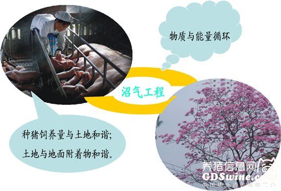 3.資源循環(huán)型生態(tài)與健康養(yǎng)豬 廣東省位于中國(guó)南部,溫度、濕度偏高,不利于發(fā)展發(fā)酵床養(yǎng)豬模式;同時(shí),“野外放養(yǎng)”模式占地面積大,生產(chǎn)效率低,不能滿足人們對(duì)豬肉需求量。發(fā)展“豬-沼-林(菜)、漁”模式,比較充分地利用農(nóng)業(yè)生產(chǎn)收獲的能量和物質(zhì),可以調(diào)節(jié)能源、飼料、肥料三者之間的關(guān)系,凈化環(huán)境,減少污染,保護(hù)水資源,提高土壤肥力,減少化肥的施用,從而保護(hù)農(nóng)業(yè)生態(tài)平衡,促進(jìn)農(nóng)、牧各業(yè)的發(fā)展,對(duì)促進(jìn)新農(nóng)村建設(shè)和建立資源節(jié)約型、環(huán)境友好型社會(huì)有積極的推動(dòng)作用。 養(yǎng)豬公司生態(tài)與健康養(yǎng)殖模式主要從豬場(chǎng)選址與布局、豬舍規(guī)劃與建筑結(jié)構(gòu)設(shè)計(jì)和物質(zhì)與能量循環(huán)三個(gè)方面進(jìn)行,以廣東寶興農(nóng)牧科技有限公司為例,具體實(shí)施辦法如下: 3.1 跳出傳統(tǒng)豬場(chǎng)規(guī)劃思維模式,建設(shè)資源循環(huán)型、環(huán)境友好型豬場(chǎng) 目前,環(huán)境保護(hù)與動(dòng)物源性食品質(zhì)量安全日益得到重視,豬場(chǎng)建設(shè)規(guī)劃跳出傳統(tǒng)豬場(chǎng)的規(guī)劃思維模式,將規(guī)模養(yǎng)豬設(shè)計(jì)要求與環(huán)境保護(hù)有機(jī)結(jié)合起來,充分考慮豬場(chǎng)產(chǎn)生的廢物與土地承載消化能力,做到種豬飼養(yǎng)量與土地和諧;土地與地面附著物和諧,建設(shè)資源循環(huán)型、環(huán)境友好型豬場(chǎng)。 3.2 豬場(chǎng)規(guī)劃和豬舍建筑建設(shè)符合NY/T 1568-2007標(biāo)準(zhǔn),完善豬場(chǎng)建筑建設(shè)和種豬飼養(yǎng)管理。 3.2.1實(shí)施種豬定位欄與大欄相結(jié)合,加強(qiáng)母豬運(yùn)動(dòng),有利于提高母豬免疫功能和生產(chǎn)性能。 3.2.2產(chǎn)房與保育舍排污系統(tǒng)的暗溝改為明溝,降低豬舍內(nèi)甲烷等氣體濃度,有利于改善豬舍內(nèi)空氣質(zhì)量,改善豬群健康。 3.2.3產(chǎn)房與保育舍采用陡坡式設(shè)計(jì),有利于糞、尿快速排入明溝,使豬糞、尿與豬分開,降低產(chǎn)房與保育舍內(nèi)濕度,減少仔豬腹瀉。 3.2.4采用三點(diǎn)式飼養(yǎng),配種分娩舍在一點(diǎn),保育舍一點(diǎn),生長(zhǎng)育肥舍一點(diǎn),三點(diǎn)分開在三個(gè)較遠(yuǎn)的地方單獨(dú)飼養(yǎng),有利于切斷豬場(chǎng)內(nèi)病原循環(huán)。 3.2.5種豬采用分胎次飼養(yǎng),后備母豬和生產(chǎn)第一胎母豬在一起飼養(yǎng),基礎(chǔ)母豬在另外地點(diǎn)飼養(yǎng),有利于控制后備母豬帶來的病原傳播,同時(shí),選擇生產(chǎn)性能優(yōu)良的種豬作為基礎(chǔ)母豬,優(yōu)化種豬群體結(jié)構(gòu)。 3.3 發(fā)展“豬-沼-花木、漁”資源循環(huán)型生態(tài)健康養(yǎng)豬,實(shí)現(xiàn)物質(zhì)與能量循環(huán)最大化。 寶興公司現(xiàn)已建成800m3混合式沼氣工程;有機(jī)肥生產(chǎn)車間500m2;花木基405畝。公司逐步擴(kuò)大循環(huán)系統(tǒng)規(guī)模和延伸循環(huán)系統(tǒng)中生物鏈。 3.3.1建設(shè)與現(xiàn)有種豬存欄相匹配的循環(huán)系統(tǒng) (1)建設(shè)大型沼氣系統(tǒng)工程:在四個(gè)不同地點(diǎn)建厭氧發(fā)酵池6座,其中500m3兩座、1000 M3四座,配套建設(shè)容積500m3沼氣儲(chǔ)氣罐和2套共130千瓦的沼氣發(fā)電機(jī)組,年發(fā)電量56萬度,滿足豬場(chǎng)生產(chǎn)和生活用電。 (2)建設(shè)有機(jī)肥加工中心:在原有生產(chǎn)技術(shù)水平基礎(chǔ)上,加大科研投入,進(jìn)行菌種篩選,探討最佳發(fā)酵時(shí)間、溫度、濕度等技術(shù)因素,改善發(fā)酵技術(shù),提高生產(chǎn)水平。建筑面積800m2,年產(chǎn)有機(jī)肥3000多噸,產(chǎn)品除公司花木基地自用外,還向社會(huì)供給蔬菜基地及果園林場(chǎng)。 (3)建設(shè)名貴庭院花木基地:首次在3000多畝山地上種植庭院名貴花木,規(guī)劃種植洋紅小鈴木、黃花風(fēng)鈴木、大葉傘、銀葉金合歡等庭院名貴花木22萬株。利用厭氧發(fā)酵后的沼氣液,抽送到山頂若干個(gè)儲(chǔ)藏池存放,通過滴灌系統(tǒng)澆灌花木,使豬場(chǎng)產(chǎn)生的污染物達(dá)到零排放,變廢為寶,實(shí)現(xiàn)綠色利用。 3.3.2延伸現(xiàn)有循環(huán)系統(tǒng)中的生物鏈 豬糞經(jīng)發(fā)酵制成有機(jī)肥,用于花木基地和社會(huì)蔬菜基地、果園林場(chǎng);豬場(chǎng)污水經(jīng)厭氧發(fā)酵產(chǎn)生沼氣,用于沼氣發(fā)電,滿足生產(chǎn)及生活用電;沼氣液抽送于山頂澆灌花木,達(dá)到養(yǎng)豬廢棄物零排放;沼氣渣飼養(yǎng)蚯蚓,蚯蚓養(yǎng)漁,殘留物用于花木基地,提高沼氣渣附加值,提供有機(jī)水產(chǎn)品。 循環(huán)系統(tǒng)工程圖見下: 作者:李志鵬 張靜 廣東寶興農(nóng)牧科技有限公司 |