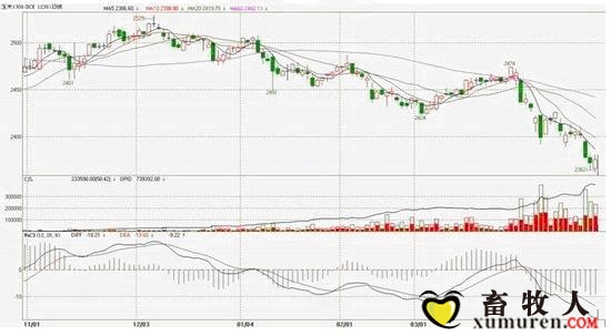 除H7N9對禽類產(chǎn)生較大影響外,春節(jié)過后,生豬價格持續(xù)下跌,對豬價也產(chǎn)生了較大的影響,生豬出欄量增加,存欄下降,養(yǎng)殖戶經(jīng)營虧損,對飼料廠欠款采購,飼料廠資金周轉(zhuǎn)率下降,豬肉行情的不見好轉(zhuǎn)也令小型養(yǎng)殖戶失去信心,飼料廠和中間商原料采購心態(tài)謹慎。在豬肉價格持續(xù)走弱和H7N9疫情的影響下,各方主體態(tài)度謹慎,短期利空玉米期現(xiàn)貨。