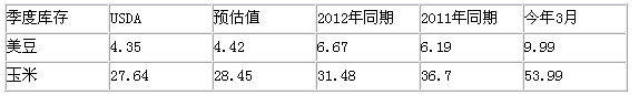 USDA季度庫(kù)存報(bào)告:(億蒲式耳)