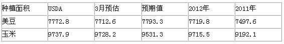 USDA種植面積報(bào)告:(百萬(wàn)英畝)