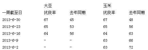 USDA美國(guó)大豆及玉米生長(zhǎng)進(jìn)度匯總:(%)