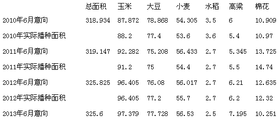 2012和2013年6月種植面積預(yù)估進(jìn)行對(duì)比: