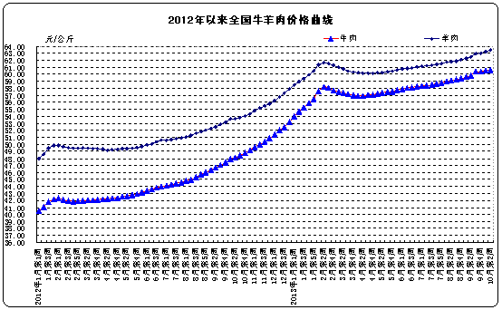 據(jù)對全國480個集貿(mào)市場畜禽產(chǎn)品和飼料價格定點監(jiān)測,10月份第2周牛肉、羊肉和生鮮乳價格上漲,其他主要畜產(chǎn)品和玉米價格下降。
