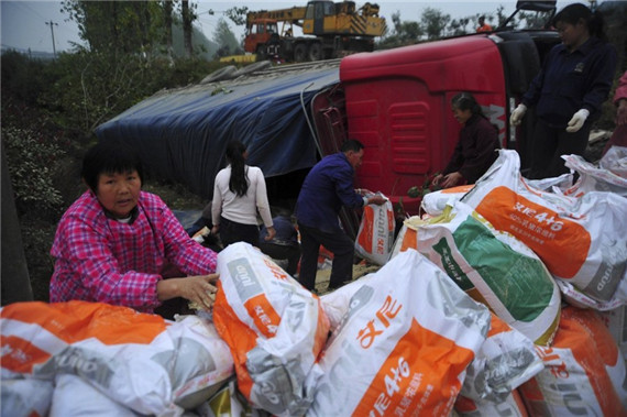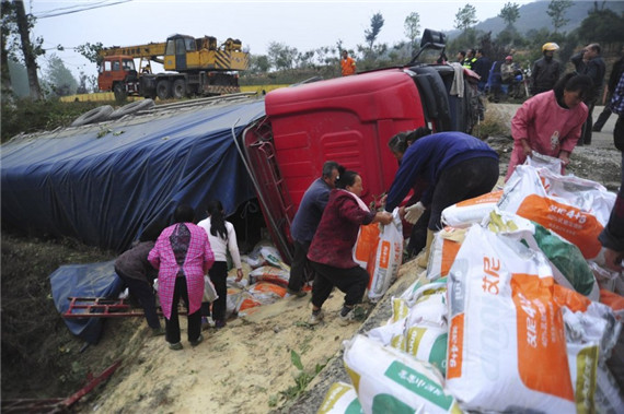 2013年11月1日凌晨1點(diǎn)左右,安徽省合肥市廬江縣境內(nèi),一輛滿載飼料的20噸貨車因避讓一只小動(dòng)物側(cè)翻,20噸飼料翻落一地。當(dāng)?shù)卮迕竦弥?,紛紛趕過來,自發(fā)將翻倒在馬路下的飼料搬上馬路邊。 事發(fā)后,當(dāng)?shù)卮迕竦弥闆r,紛紛走出家門,趕至事發(fā)地點(diǎn),自發(fā)參與施救。當(dāng)時(shí),杜師傅看到村民全都趕過來,以為是來哄搶飼料的,沒想到他們是來義務(wù)幫忙的,令他十分感動(dòng)。 |