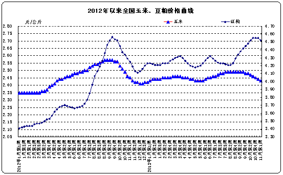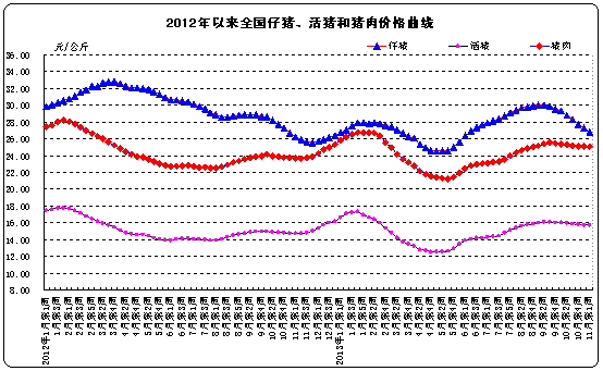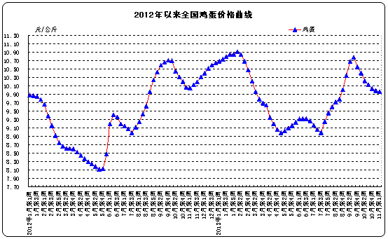 據(jù)對(duì)全國(guó)480個(gè)集貿(mào)市場(chǎng)畜禽產(chǎn)品和飼料價(jià)格定點(diǎn)監(jiān)測(cè),11月份第1周生豬、雞蛋、白條雞和玉米價(jià)格下降,牛羊肉、生鮮乳和活雞價(jià)格上漲。