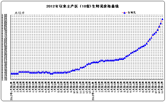 生鮮乳價(jià)格。內(nèi)蒙古、河北等10個(gè)奶牛主產(chǎn)省生鮮乳平均價(jià)格3.93元/公斤,比上周上漲1.3%,同比上漲18.0%。