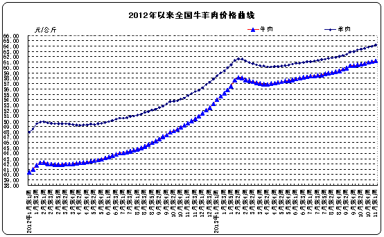 牛羊肉價(jià)格。全國(guó)牛肉平均價(jià)格61.25元/公斤,比上周上漲0.3%,同比上漲23.5%。河北、遼寧、吉林、山東和河南等主產(chǎn)省份牛肉平均價(jià)格56.70元/公斤,比上周上漲0.3%;上海、浙江、福建、廣東和江蘇等省份平均價(jià)格68.61元/公斤,比上周上漲0.1%。全國(guó)羊肉平均價(jià)格64.18元/公斤,比上周上漲0.3%,同比上漲17.1%。河北、內(nèi)蒙古、山東、河南和新疆等主產(chǎn)省份羊肉平均價(jià)格62.43元/公斤,比上周上漲0.3%;上海、浙江、福建、江西和廣東等省份平均價(jià)格68.14元/公斤,比上周上漲0.5%。