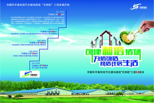 京鵬環(huán)宇畜牧現(xiàn)代化豬場(chǎng)“金字塔”式健康可持續(xù)發(fā)展目標(biāo)管理體系模式 與天種不太相同的是,京鵬環(huán)宇畜牧并不直接養(yǎng)豬,而是致力于為豬締造舒適住居生活,但與天種相同的是,為豬業(yè)發(fā)展而開(kāi)拓創(chuàng)新、求真務(wù)實(shí)、潛心研究、砥礪前行的態(tài)度。京鵬在專注于自主研發(fā)的同時(shí),一向以開(kāi)放創(chuàng)新的精神注重國(guó)際合作,走出了一條走出去、引進(jìn)來(lái)的發(fā)展之路,使國(guó)際前沿的養(yǎng)豬技術(shù)和先進(jìn)設(shè)備得以在中國(guó)本土成功落地??梢哉f(shuō),這兩大在不同領(lǐng)域各有千秋的民族企業(yè),具備同樣的國(guó)際化基因、本土化使命,以及共同的理念和目標(biāo)。 在探尋行業(yè)及自身健康發(fā)展的道路上,京鵬環(huán)宇畜牧經(jīng)過(guò)多年的努力,不斷創(chuàng)新升級(jí),創(chuàng)建并大力推廣交鑰匙工程,獲得行業(yè)的多方肯定。2011 ~2014年間,京鵬環(huán)宇畜牧交鑰匙工程已從早年的“設(shè)計(jì)+建筑工程+豬欄設(shè)備”服務(wù),升級(jí)發(fā)展到了交鑰匙工程5.0版本,成為構(gòu)建“金字塔”養(yǎng)豬體系的有力支撐。