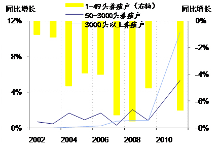本文作者:國(guó)信證券分析師鐘正生、林虎 自9月上旬高點(diǎn)算起,22省市平均豬肉價(jià)格已連續(xù)下降超過(guò)7周。特別是,至今年年中能繁母豬存欄量已降至2010年以來(lái)的歷史低位,市場(chǎng)不免擔(dān)心豬周期引發(fā)通脹失控的風(fēng)險(xiǎn)。不過(guò),與前兩輪豬周期相比,本輪豬周期有兩個(gè)重要差別,決定了本輪豬價(jià)波動(dòng)的幅度和持續(xù)性不足為慮: 一、與前兩輪豬周期時(shí)的經(jīng)濟(jì)基本面相比較,本輪不會(huì)再出現(xiàn)經(jīng)濟(jì)整體過(guò)熱、流動(dòng)性寬松、大規(guī)模投資投入的局面,基本面決定了豬價(jià)仍然會(huì)延續(xù)一段震蕩調(diào)整期,調(diào)整后豬肉價(jià)格有望緩慢上行;二、散養(yǎng)戶逐漸退出、規(guī)?;B(yǎng)殖戶比重不斷提高,我國(guó)“豬周期”的波動(dòng)性有望下降,同時(shí)規(guī)?;B(yǎng)殖水平的提高也有效削弱了以往疫病等外生性沖擊事件對(duì)于豬價(jià)助漲助跌的影響。 基于以上兩點(diǎn)重要差異,我們預(yù)計(jì)本輪豬肉價(jià)格上漲周期應(yīng)當(dāng)在2014年底開(kāi)始,持續(xù)上漲至2015第三季度達(dá)到階段性高點(diǎn),豬價(jià)上漲幅度在50%左右,漲幅遠(yuǎn)遠(yuǎn)小于前兩輪周期。考慮到2014全年豬價(jià)對(duì)CPI同比拉動(dòng)在0.1%-0.2%之間,我們大致估算出明年豬價(jià)對(duì)CPI同比的拉動(dòng)大約在0.05%-0.1%之間。 近三輪豬周期的簡(jiǎn)單回顧2003年至今,我國(guó)經(jīng)歷近三個(gè)完整的豬周期,其中前兩個(gè)豬周期持續(xù)時(shí)間分別為38個(gè)月和46個(gè)月,目前正處于第三個(gè)豬周期的下跌階段。三輪周期中,豬價(jià)波動(dòng)幅度均較大,2006-2010年周期中豬價(jià)最大漲幅達(dá)到150%左右(圖1)。 豬價(jià)短期波動(dòng)可以根據(jù)供需缺口和季節(jié)性因素進(jìn)行判斷,但對(duì)中長(zhǎng)期趨勢(shì),仍需放到經(jīng)濟(jì)貨幣周期的大背景里來(lái)看待。 第一輪豬周期是2003年4月-2006年5月,持續(xù)時(shí)間38個(gè)月。從經(jīng)濟(jì)貨幣周期看,這一時(shí)期經(jīng)濟(jì)基本面的主要特征是流動(dòng)性過(guò)剩和投資過(guò)熱,經(jīng)濟(jì)處于周期性繁榮階段,GDP增速保持在11%左右,2004年3季度的CPI同比一直高居在5.3%以上。 第二輪豬周期是2006年6月-2010年3月,持續(xù)時(shí)間46個(gè)月。為熨平國(guó)際金融危機(jī)的負(fù)面沖擊,政府祭出大規(guī)模刺激計(jì)劃,這一時(shí)期基本面呈現(xiàn)出整體過(guò)熱、流動(dòng)性寬松、通脹持續(xù)上行、勞動(dòng)力成本加速上升的態(tài)勢(shì)。M2當(dāng)月同比增速升至30%左右,同期工業(yè)增加值當(dāng)月同比逼近20%的高點(diǎn)。經(jīng)濟(jì)過(guò)熱引發(fā)通脹持續(xù)上行,CPI和PPI分別上升至8.7和10.1的階段性高點(diǎn)(表1)。 資料來(lái)源:WIND、國(guó)信證券經(jīng)濟(jì)研究所整理 2010年4月至今,豬價(jià)正經(jīng)歷十年來(lái)的第三個(gè)豬周期,最低從2010年6月的14.86元/公斤上漲至2011年9月的30.41元/公斤,目前豬價(jià)回落至21.91元/千克。2011年9月豬價(jià)的階段性高點(diǎn),正好對(duì)應(yīng)了工業(yè)增加值同比變化的高點(diǎn)(超過(guò)20%),而豬價(jià)在2014年上半年跌至谷底時(shí),工業(yè)增加值和M2 當(dāng)月同比變化增速均跌落至階段性低點(diǎn)(圖2)。 圖2 本輪豬周期的“變異”之處從生豬養(yǎng)殖流程來(lái)看,從能繁母豬補(bǔ)欄到形成商品豬的供應(yīng)一般需要12-14個(gè)月,因此豬肉價(jià)格對(duì)能繁母豬存欄數(shù)往往有12-14個(gè)月的滯后反應(yīng)期。2013年下半年開(kāi)始,無(wú)論是能繁母豬存欄數(shù)還是生豬存欄數(shù),都顯示出了較為明顯的下降趨勢(shì)??傮w來(lái)看,本輪豬周期豬價(jià)下跌持續(xù)時(shí)間夠長(zhǎng),跌幅夠深,養(yǎng)殖戶養(yǎng)殖虧損時(shí)間夠長(zhǎng),虧損夠深。因此,本次下跌周期接近尾聲之際,養(yǎng)殖戶無(wú)論是對(duì)仔豬的補(bǔ)欄積極性還是對(duì)能繁母豬的補(bǔ)欄積極性都并不高。生豬存欄數(shù)雖從底部有所抬升,但仍處相對(duì)較低的位置,能繁母豬存欄數(shù)則持續(xù)下降(圖3)??梢?jiàn),本輪豬周期無(wú)論是從去庫(kù)存還是從去產(chǎn)能角度來(lái)看,都清除得足夠徹底。 圖3 不過(guò),與前兩輪豬周期相比,本輪豬周期有兩個(gè)重要差別,決定了本輪豬價(jià)波動(dòng)的幅度和持續(xù)性不足為慮: 第一個(gè)差別是,與前兩輪豬周期時(shí)的經(jīng)濟(jì)基本面相比較,本輪不會(huì)再出現(xiàn)經(jīng)濟(jì)整體過(guò)熱、流動(dòng)性寬松、大規(guī)模投資投入的局面(表1)。實(shí)際上,當(dāng)前宏觀經(jīng)濟(jì)景氣仍然偏低,投資增速趨勢(shì)性回落,信用和社會(huì)融資擴(kuò)張?jiān)鏊倬S持低位,經(jīng)濟(jì)基本面決定了豬價(jià)仍會(huì)延續(xù)一段震蕩調(diào)整期,調(diào)整后豬肉價(jià)格有望緩慢漸進(jìn)地上行。 第二個(gè)差別是,散養(yǎng)戶逐漸退出、規(guī)模化養(yǎng)殖戶比重不斷提高,我國(guó)“豬周期”的波動(dòng)性有望下降,同時(shí)規(guī)模化養(yǎng)殖水平的提高也有效削弱了以往疫病等外生性沖擊事件對(duì)于豬價(jià)助漲助跌的影響。 我們可以從美國(guó)的生豬規(guī)模化養(yǎng)殖進(jìn)