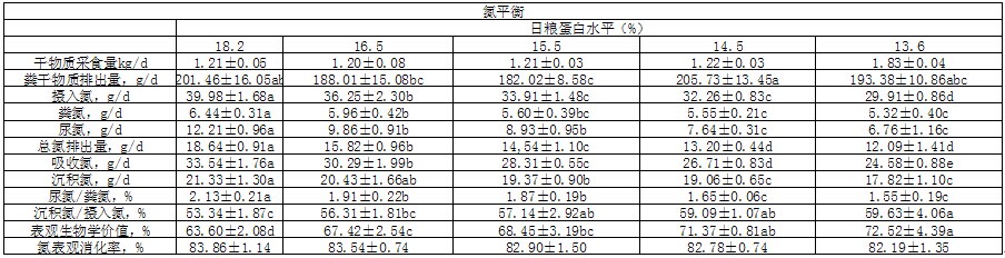 試驗(yàn)小結(jié):1、在玉米-豆粕-棉仁粕型日糧中補(bǔ)充Lys、Met和Thr,生長(zhǎng)豬日糧CP從18.2%降到14.5%,肥育豬日糧CP從16.1%降到13.3%而不影響生產(chǎn)性能;2、生長(zhǎng)豬總氮排出量與日糧CP之間線性回歸關(guān)系為Y=1.35x-6.18(R2=0.85,P<0.01),肥育豬日糧CP從16.1%降到11.7%,總氮排泄量降低39.44%(P<0.01);3、降低日糧CP補(bǔ)充Lys、Met和Thr,減輕胰腺、腎和大腸的重量,增加能量利用率,使背膘增厚,眼肌面積降低。