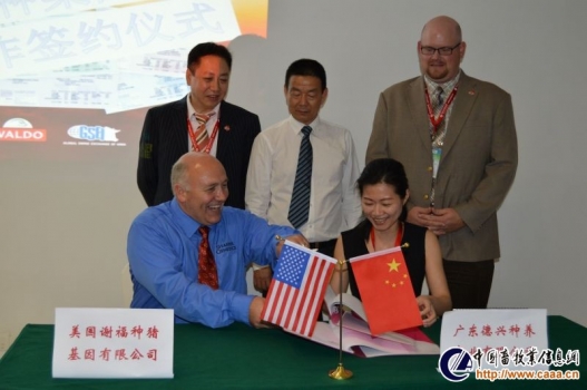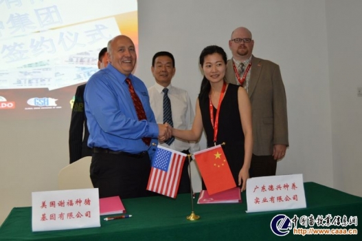 隨著“第十三屆(2015)中國畜牧業(yè)博覽會暨2015中國國際畜牧業(yè)博覽會”的召開,2015年5月18日上午11時,“美國國家種豬登記協(xié)會中國成員授牌儀式暨成員同步育種合作簽約儀式”在重慶國際博覽中心成功舉行。道格拉斯全球技術(shù)服務(wù)副總裁紐康博士、華特希爾麥克•雷蒙博士、謝福育種中國辦公室克萊德•謝福先生、廣東德興種養(yǎng)實業(yè)有限公司總經(jīng)理姚輝德、廣東德興種養(yǎng)實業(yè)有限公司副總經(jīng)理姚燕青、唐人神集團(tuán)衡水華特希爾陽強(qiáng)先生、上海祥欣畜禽有限公司董事長嚴(yán)國祥,以及來自全國的養(yǎng)豬企業(yè)、行業(yè)媒體記者80余人出席了會議。會議由美佳育種集團(tuán)中國區(qū)運營總監(jiān)周冬曄主持。 上海祥欣畜禽有限公司和美達(dá)斯達(dá)瑞吉育種有限公司、美國謝福育種集團(tuán),唐人神集團(tuán)衡水華特希爾和美國華特希爾育種有限公司首次獲得ABG海外登記證書。會上,美國國家種豬登記協(xié)會為他們頒發(fā)了ABG海外登記證書。 上海祥欣畜禽有限公司董事長嚴(yán)國祥在會上說,“我們公司得到了美國育種公司的大力支持,他們到公司考察,并對我們進(jìn)行育種、管理方面的指導(dǎo),使我們?nèi)〉昧藰O大的進(jìn)步。經(jīng)過幾個月的準(zhǔn)備,我們達(dá)到了要求的目標(biāo)?!眹?yán)國祥強(qiáng)調(diào)說,豬育種是一個漫長的過程,工作繁瑣,任務(wù)很重,我們一定會全力以赴,一定會取得成功。上海祥欣畜禽有限公司現(xiàn)在把育種作為國際化的事業(yè)在做。同時,嚴(yán)總告訴記者,上海祥欣畜禽有限公司每一頭種豬的相關(guān)數(shù)據(jù)都在美國國家種豬登記協(xié)會的數(shù)據(jù)平臺上完成對接,去年有一頭長白豬在美國的幾百萬頭豬中排名第一。 美國謝福種豬基因(廣州)有限公司總裁湯世偉在會上說,海外育種登記證書不僅僅是一張紙,它包含著很多內(nèi)容,凝結(jié)著養(yǎng)豬場幾十年來的測定工作和幾十年的養(yǎng)豬實踐經(jīng)驗。在這張證書清楚地顯示了每一頭豬生產(chǎn)性能的具體表現(xiàn)。他還指出,在中國,廣東德興種養(yǎng)實業(yè)有限公司真正做到了育種,通過了美國NSR中央數(shù)據(jù)庫育種的評估。德興對豬育種有著幾十年的養(yǎng)殖經(jīng)驗,母豬的生產(chǎn)性能在中國已經(jīng)達(dá)到非常高的水平,我們能夠通過管理的水平,根據(jù)種豬到美國國家種豬登記協(xié)會的育種平臺,達(dá)到一個更好的遺傳效果,能夠培育出國際水平的“德興”豬?,F(xiàn)在,國內(nèi)都在談育種,有不同形式的合作,真正做育種的企業(yè)為數(shù)不多。在美國國家種豬登記協(xié)會下,上海祥欣畜禽有限公司和廣東德興種養(yǎng)實業(yè)有限公司的育種技術(shù)會取得更大的進(jìn)步,而其他企業(yè)的育種其實就是在管理方面的合作。 另外,廣東德興種養(yǎng)實業(yè)有限公司副總經(jīng)理姚燕青和美國謝福育種集團(tuán)代表在會上簽訂了管理服務(wù)合同。這也意味著廣東德興種養(yǎng)實業(yè)有限公司將成為在NSR登記種豬的海外新成員,為以后育種之路鋪平了道路,我們相信在不久的將來,廣東德興會培育出真正適合中國的品種,讓我們拭目以待。 |
