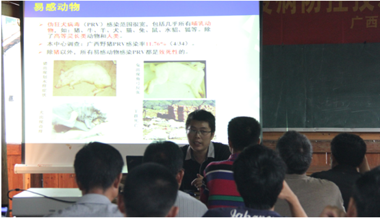 2015年05月28日,廣西獸醫(yī)研究所吳健敏副所長一行6人在三江縣良口鄉(xiāng)產(chǎn)口村開展動物疫病防控技術(shù)培訓(xùn)。參加培訓(xùn)的人員分別來自良口鄉(xiāng)的產(chǎn)口村和仁塘村,共40多人。三江縣良口鄉(xiāng)產(chǎn)口村和仁塘村是廣西水產(chǎn)畜牧獸醫(yī)局的定點扶貧村,其中仁塘村是局下屬單位廣西獸醫(yī)研究所的定點扶貧村。 扶貧不僅僅是給農(nóng)民捐款、捐物,關(guān)鍵是提高他們的自身發(fā)展能力,這樣才能從根本上解決貧困問題。針對三江縣的養(yǎng)殖情況和當前復(fù)雜的動物疫病形勢,特別是豬偽狂犬病呈現(xiàn)新的流行特點,吳健敏副所長帶領(lǐng)研究團隊成員舉辦了這次動物疫病防控技術(shù)培訓(xùn)班。培訓(xùn)班得到了廣西水產(chǎn)畜牧獸醫(yī)局派駐扶貧村的第一書記羅良鴻和莫有東的大力支持和積極配合。培訓(xùn)班介紹了豬偽狂犬病的最新流行態(tài)勢和防控措施,還講授了雛雞養(yǎng)殖的關(guān)鍵技術(shù)和主要疫病防控。由于竹鼠養(yǎng)殖是三江縣村民用于脫貧的主要特色養(yǎng)殖項目,本次培訓(xùn)在吳健敏副所長研究團隊的最新研究的基礎(chǔ)上,還介紹了目前引起竹鼠發(fā)病死亡的主要疫病和防制措施,并邀請桂林秋波竹鼠生態(tài)科技公司的梁秋波總經(jīng)理講授了竹鼠養(yǎng)殖的技術(shù)要領(lǐng)。吳健敏副所長等人采用當?shù)卮迕窀杏X更親切的“桂柳話”進行授課,一下子拉近了與村民們的距離,語言平實、易懂,村民們個個聽得聚精會神。 廣西電視臺“第一書記”攝制組當時正在三江縣拍攝產(chǎn)口村第一書記羅良鴻的事跡,聽說有此次技術(shù)培訓(xùn)班,特意推遲一天回南寧,對培訓(xùn)班進行了全程拍攝,并在培訓(xùn)結(jié)束后,對吳健敏副所長進行了現(xiàn)場采訪。 目前吳健敏副所長的研究團隊正在承擔2013年國家農(nóng)業(yè)科技成果轉(zhuǎn)化資金項目“豬偽狂犬病快速診斷及綜合防制技術(shù)應(yīng)用示范”。將研究成果帶到農(nóng)民身邊,促進農(nóng)民增收,帶動農(nóng)民致富是國家農(nóng)轉(zhuǎn)項目的核心任務(wù)之一。此次動物疫病防控技術(shù)培訓(xùn)班將豬偽狂犬病的最新研究成果及其它動物疫病的防控技術(shù)帶給了貧困縣的農(nóng)民,是國家農(nóng)轉(zhuǎn)項目與定點扶貧相結(jié)合的一次很好的嘗試。 產(chǎn)口村第一書記羅良鴻在開班儀式上講話 吳健敏副所長在開班儀式上講話 豬偽狂犬病防控技術(shù)培訓(xùn) 村民們認真聽課 吳健敏副所長接受廣西電視臺現(xiàn)場采訪 |