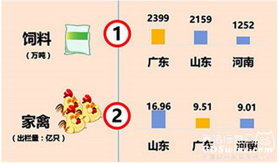 “十二五”期間,廣東農(nóng)業(yè)農(nóng)村經(jīng)濟穩(wěn)中有進,全省農(nóng)林牧漁總產(chǎn)值增長迅速:廣東萬頭豬場340家,居全國第一,生豬規(guī)模化比例達82%,家禽規(guī)模化比例達81%! 2014年廣東省飼料和家禽全國排名 節(jié)選自《數(shù)說廣東現(xiàn)代農(nóng)業(yè)十二五》 |