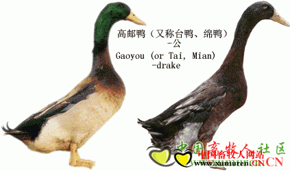 高郵鴨又稱高郵麻鴨,原產(chǎn)江蘇省高郵,是我國(guó)有名的大型肉蛋兼用型(瘦肉型)麻鴨品種。高郵鴨是我國(guó)江淮地區(qū)良種,系全國(guó)三大名鴨之一。該鴨善潛水、耐粗飼、適應(yīng)性強(qiáng)、蛋頭大、蛋質(zhì)好,且以善產(chǎn)雙黃而久負(fù)盛名。高郵鴨蛋為食用之精品,口感極佳,其質(zhì)地具有鮮、細(xì)、紅、油、嫩、沙的特點(diǎn),蛋白凝脂如玉,蛋黃紅如朱砂。 一、外貌特征 高郵鴨母鴨全身羽毛褐色,有黑色細(xì)小斑點(diǎn),如麻雀羽;主翼羽藍(lán)黑色;喙豆黑色; 虹彩深褐色;脛、蹼灰褐色,爪黑色。公鴨體型較大,背闊肩寬,胸深軀長(zhǎng)呈長(zhǎng)方形。頭頸上半段羽毛為深孔雀綠色,背、腰、胸為褐色蘆花毛,臀部黑色,腹部白色。喙青綠色,趾蹼均為桔紅色,爪黑色。 二、生產(chǎn)性能 成年公鴨體重3~4千克,母鴨2.5~3千克。屠宰率:半凈膛80.0%,全凈膛70.0%。仔鴨放養(yǎng)2月齡重達(dá)2.5千克。母鴨180~210日齡開產(chǎn),年產(chǎn)蛋169個(gè)左右,蛋重70~80克,蛋殼呈白色或綠色,以白色居多。在放牧條件下,一般70日齡體重可達(dá)1.5千克。采用配合飼料,50日齡平均體重達(dá)1.78千克。高郵鴨耐粗雜食,覓食力強(qiáng),適于放牧飼養(yǎng),且生長(zhǎng)發(fā)育快,易肥、肉質(zhì)好。 |
