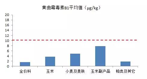 分析:玉米副產(chǎn)品嘔吐毒素超標(biāo)嚴(yán)重,且玉米與小麥及麥麩類平均值也超標(biāo)(豬),所以全價料嘔吐毒素均值標(biāo)也就不足為奇了