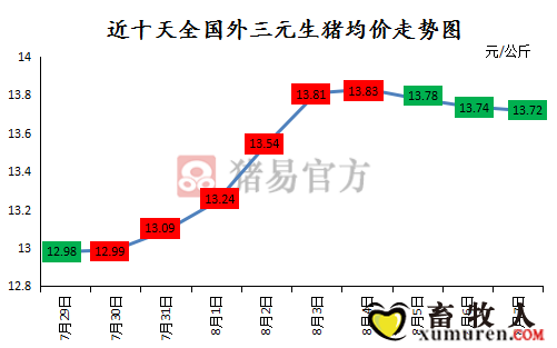 正文摘要:立秋,天氣逐漸轉(zhuǎn)涼,然而豬友們的心也是哇涼哇涼的,一首“涼涼”送給豬友們,今日豬價延續(xù)小幅回調(diào)整理態(tài)勢,據(jù)豬易數(shù)據(jù)顯示,8月7日全國外三元生豬均價為13.72元/公斤,環(huán)比下跌0.15%,與去年同期相比下跌6.28% ... |