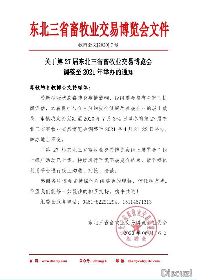 關(guān)于第二十七屆東北三省畜牧業(yè)交易博覽會(huì)調(diào)整至2021年舉辦的通知