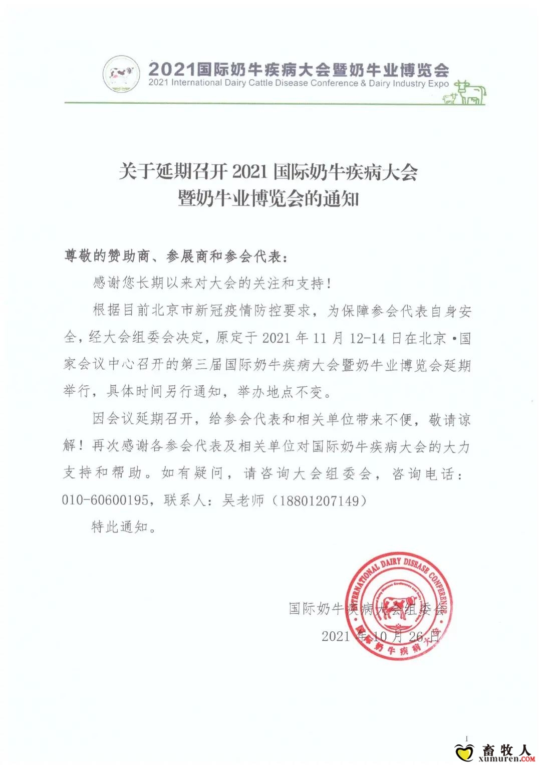 正文摘要:2021國際奶牛疾病大會暨奶牛業(yè)博覽會 延期舉行 北京·國家會議中心 關(guān)于延期召開2021國際奶牛疾病大會暨奶牛業(yè)博覽會的通知 尊敬的贊助商、參展商和參會代表∶ 感謝您長期以來對大會的關(guān)注和支持!根據(jù)目前北京 ... |
