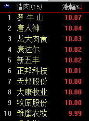 正文摘要:7月21日訊 截至收盤,豬肉概念漲8.07%,領(lǐng)漲各板塊。個股方面,羅牛山、唐人神、龍大肉食、新五豐、正邦科技、天邦股份、大康牧業(yè)、牧原股份、雛鷹農(nóng)牧、得利斯等11股漲停。 7月17日,農(nóng)業(yè)部發(fā)布6月份 ... |