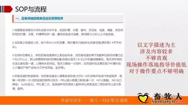 正文摘要:豬廠SOP怎么書寫作者:孫盈盈 來源:養(yǎng)豬學(xué)徒生 話題背景 書接上篇,上篇文章談及到關(guān)于現(xiàn)場管理回歸簡單化的內(nèi)容,其中非常重要的一點(diǎn)就是借助流程以及可視化來實(shí)現(xiàn)現(xiàn)場的有效監(jiān)督和指導(dǎo)。如果把現(xiàn)代化豬 ... |