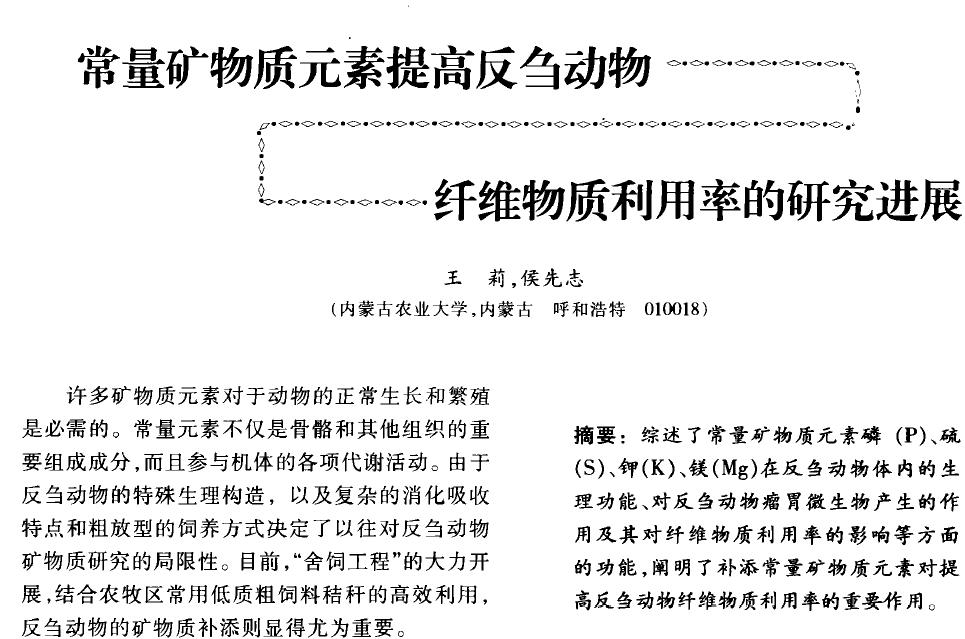 常量礦物質(zhì)元素提高反芻動(dòng)物纖維物質(zhì)利用率的研究進(jìn)展 |