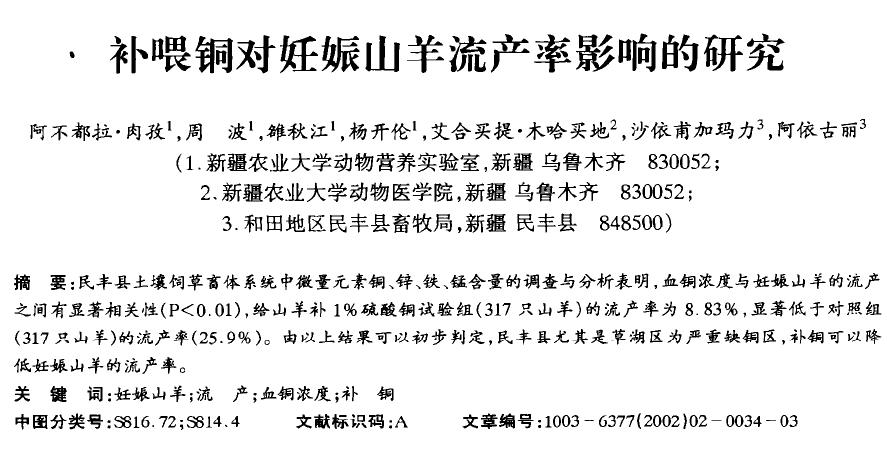 補喂銅對妊娠山羊流產(chǎn)率影響的研究 |