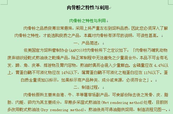 肉骨粉之特性與利用及玉米麩皮成分 |