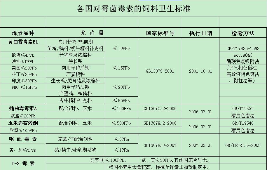 霉菌毒素各國標(biāo)準(zhǔn) |