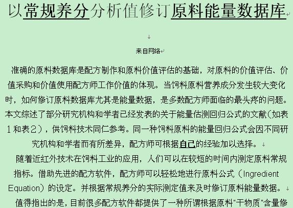 以常規(guī)養(yǎng)分分析值修訂原料能量數(shù)據(jù)庫(kù) |