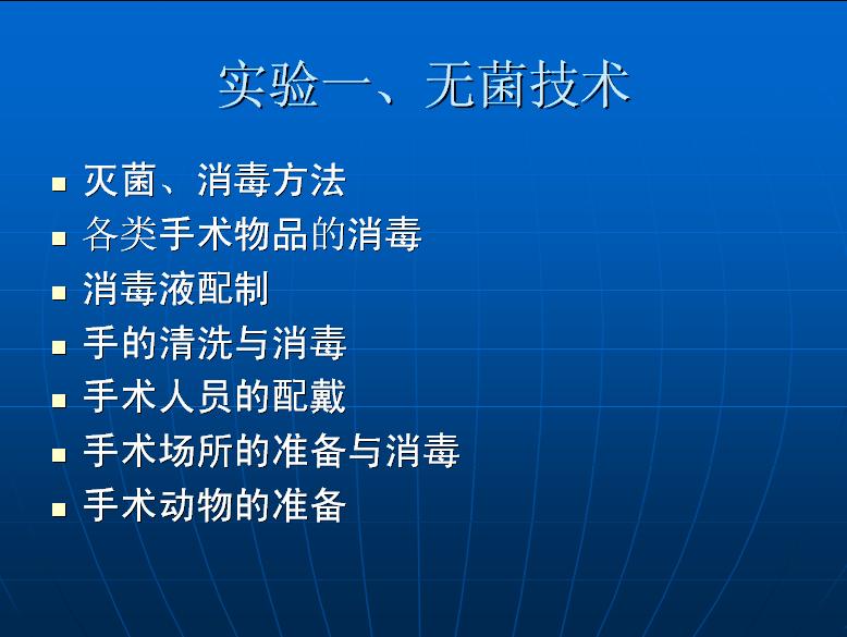 實(shí)驗(yàn)一:手術(shù)無(wú)菌操作技術(shù) |