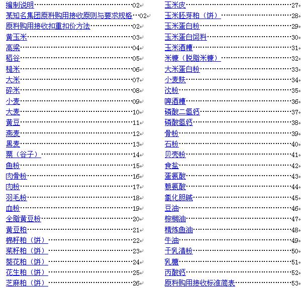 某知名外企飼料原料購用接收標(biāo)準(zhǔn) |