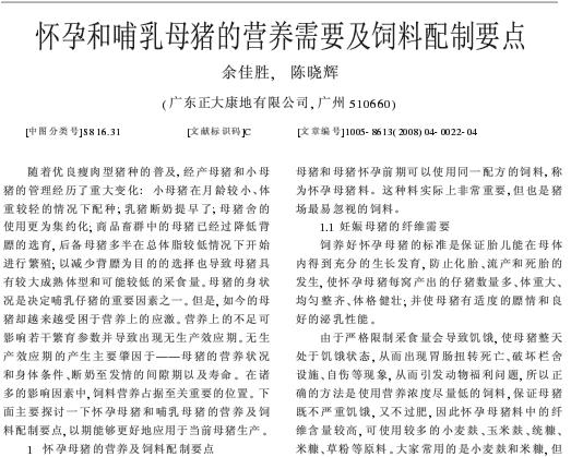 懷孕和哺乳母豬的營養(yǎng)需要及飼料配制要點(diǎn) |