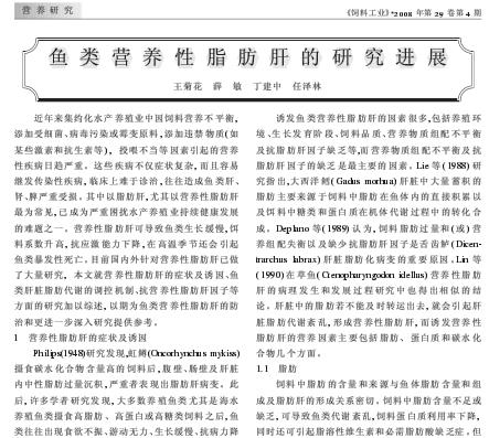 魚(yú)類營(yíng)養(yǎng)性脂肪肝的研究進(jìn)展 |