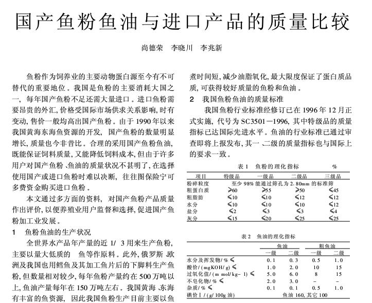 國產(chǎn)魚粉與進(jìn)口魚粉品質(zhì)比較研究 |
