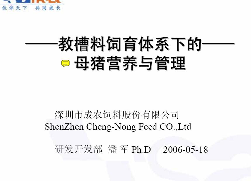 教槽料飼育體系下的母豬營(yíng)養(yǎng)與管理 |