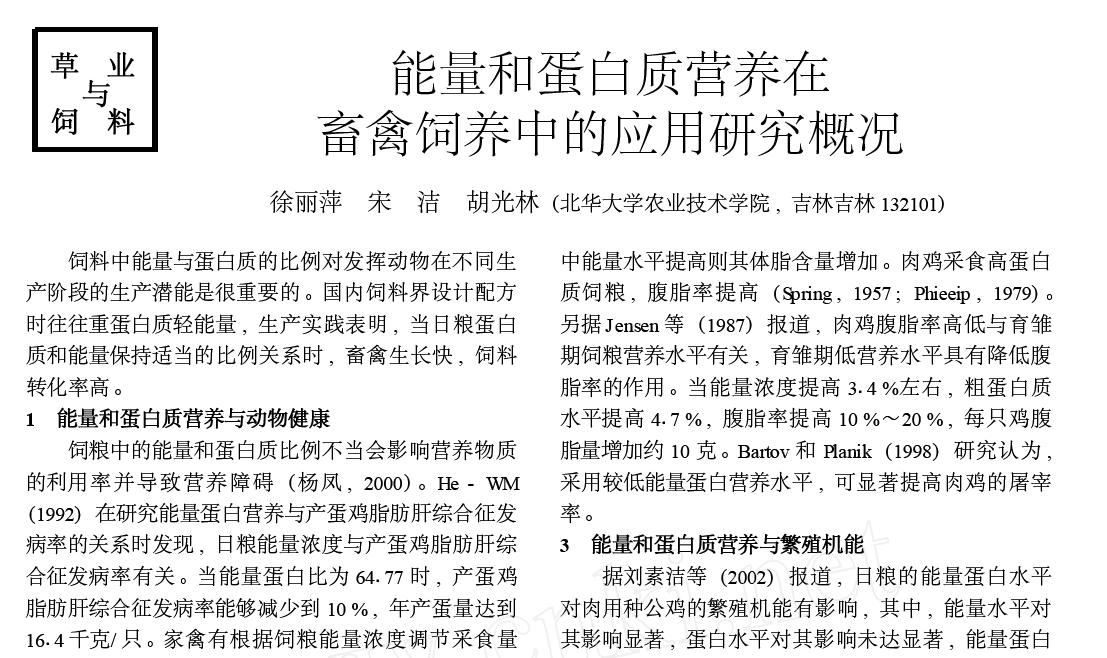 能量和蛋白質(zhì)營養(yǎng)在畜禽飼養(yǎng)中的應(yīng)用研究概況 |