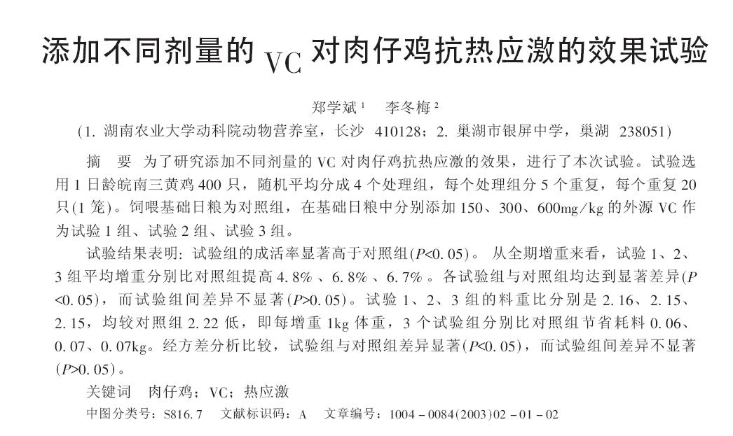 添加不同劑量的VC對肉仔雞抗熱應(yīng)激的效果試驗.pdf |