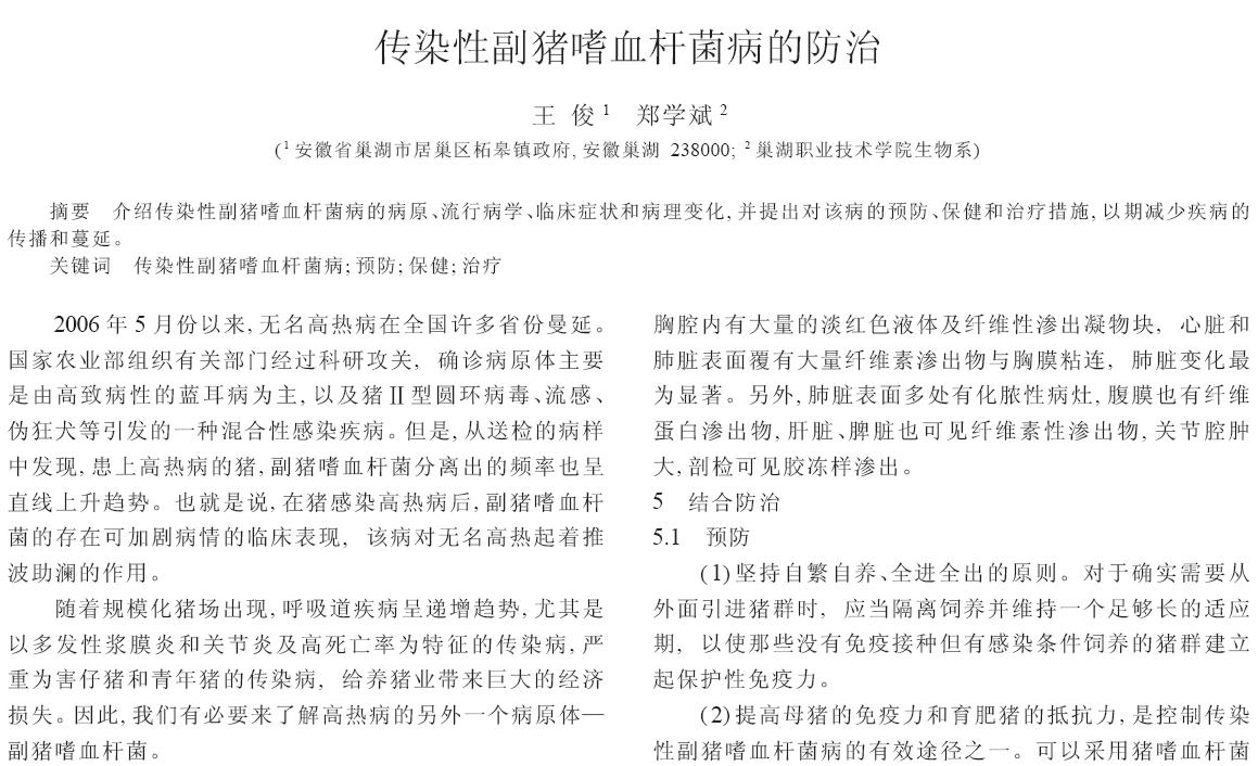 傳染性副豬嗜血桿菌病的防治 |