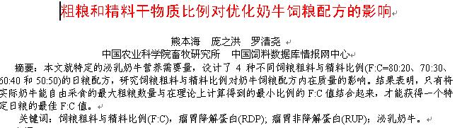粗糧和精料干物質(zhì)比例對優(yōu)化奶牛飼糧配方的影響 |