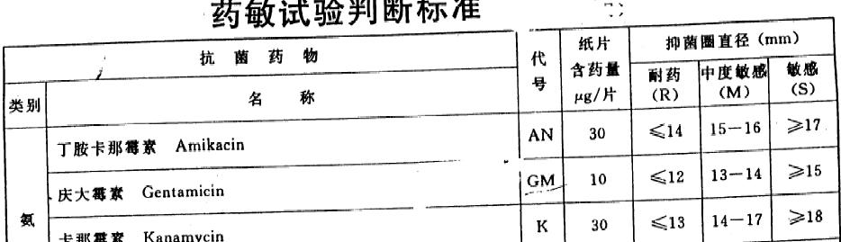 紙片法藥敏試驗(yàn)判定標(biāo)準(zhǔn) |
