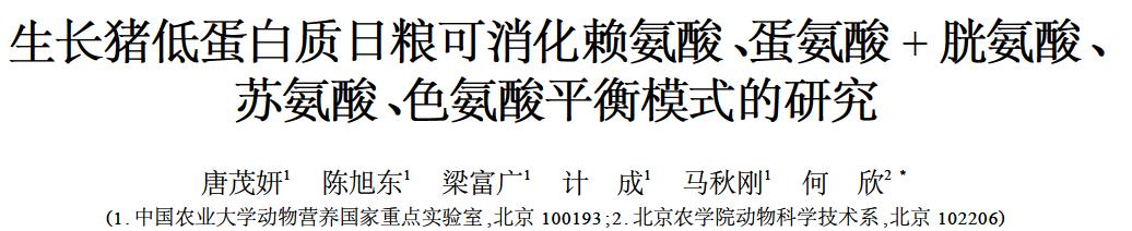 生長豬低蛋白質(zhì)日糧可消化賴、蛋、蛋+胱、蘇、色平衡模式 |
