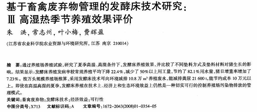 基于畜禽廢棄物管理的發(fā)酵床技術(shù)研究 Ⅱ.接種劑的應(yīng)用效果研究 |