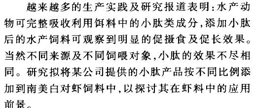 小肽在南美白對(duì)蝦飼料中應(yīng)用的研究 |