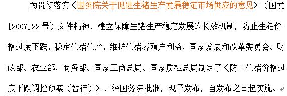 六部門發(fā)布防止生豬價格過度下跌調(diào)控預(yù)案(暫行) |