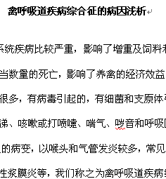 禽呼吸道疾病綜合征的病因淺析 |