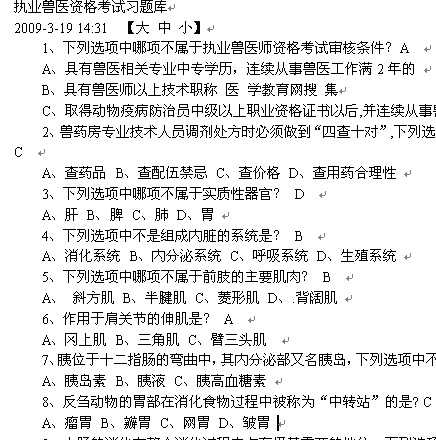 執(zhí)業(yè)獸醫(yī)資格考試習(xí)題庫 |
