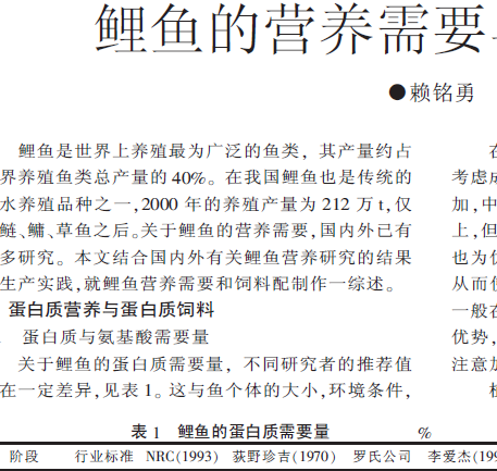 鯉魚的營(yíng)養(yǎng)需要與飼料配制 |