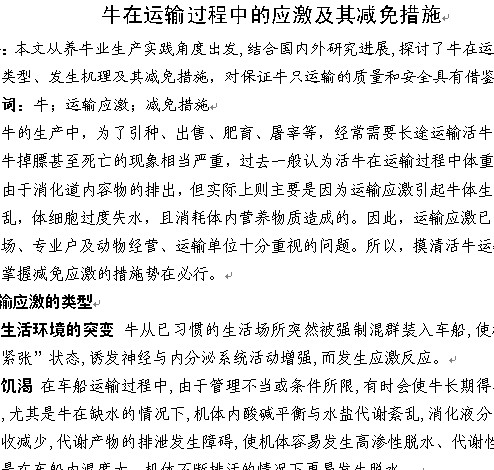 牛在運(yùn)輸過程中的應(yīng)激及其減免措施 |