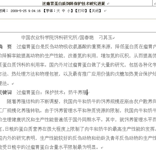 過瘤胃蛋白質飼料保護技術研究進展 |